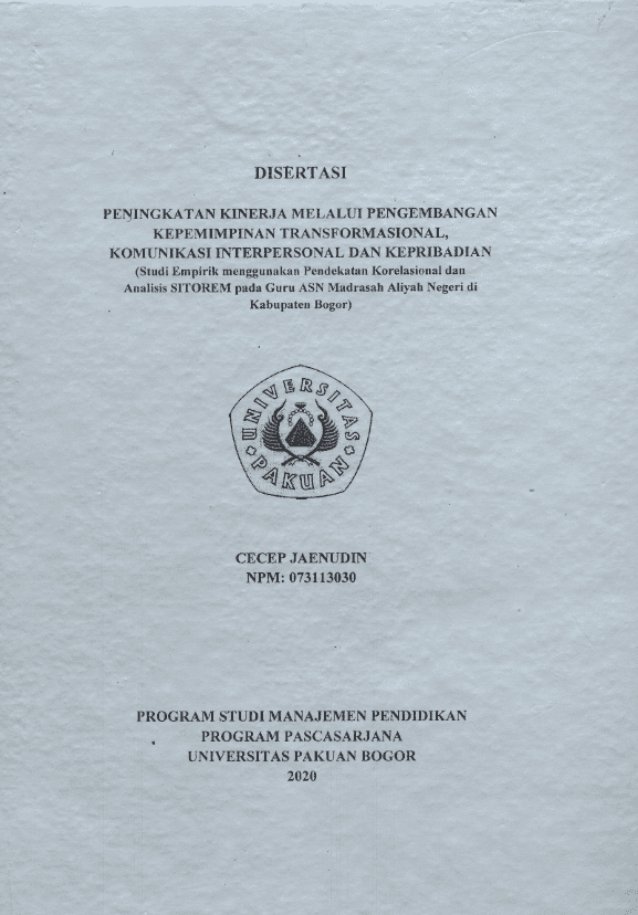PENINGKATAN KINERJA MELALUI PENGEMBANGAN KEPEMIMPINAN TRANSFORMASIONAL, KOMUNIKASI INTERPERSONAL DAN KEPRIBADIAN (Studi Empirik menggunakan Pendekatan Korelasional dan Analisis SITOREM pada Guru ASN Madrasah Aliyah Negeri di Kabupaten Bogor)