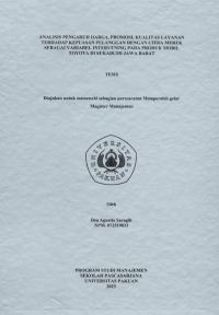 Analisis Pengaruh Harga , promosi , Kualitas Layanan Terhadap Kepuasan Pelanggan Dengan Citra Merek Sebagai Variabel Intervening Pada Produk Mobil Toyota Di Sukabumi Jawa Barat